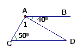 (6分)如图,CA⊥AD,垂足为A,∠C=500,∠BAD=400,说明AB∥CD
