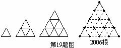 19. 如图,是用火柴棒摆出的一系列三角形图案,按这种方案摆下去,当每边上摆2006根火柴棒时,共需要摆________根火柴棒.