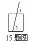 15.如图,用一吸管吸吮易拉罐内的饮料时,吸管与易拉罐上部夹角∠1=75°,则吸管与易拉罐下部夹角∠2=____。