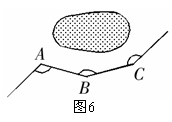 3.如图6,一条公路修到湖边时,需拐弯绕道而过,如果第一次拐的角∠A=120°,第二次拐的角∠B是150°,第三次拐的角是∠C,这时的道路恰好和第一次拐弯之前的道路平行,则∠C是( ).