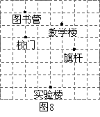 1.(本题8分)某学校的平面示意图如图8所示,如图实验楼所在位置的坐标为(-2,-3),教学楼所在位置的坐标为(-1,2),请确定图书馆所在位置的坐标.