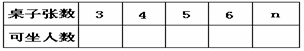 ⑴2张桌子拼在一起可坐多少人?3张呢?n张呢?
