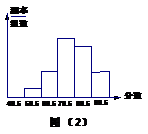 6. 连云港市某校在“创新素质实践行”活动中组织学生进行社会调查,并对学生的调查报告进行了评比,图(2)是将某年级60篇学生调查报告的成绩进行整理,分成5组画出的频率分布条形图。已知从左至右4个小组的频率分别是0.05,0.15,0.35,0.30。那么在这次评比中被评为优秀的调查报告有(分数大于或等于80分为优秀,且分数为整数)( )