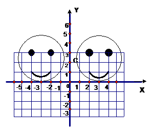 ⑴试确定右图案的左右眼睛和嘴角左右端点的坐标