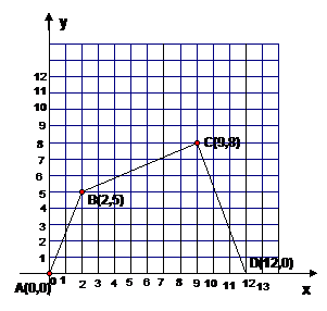 在如图所示的直角坐标系中,四边形ABCD的各个顶点的坐标分别是A(0,0),B(2,5),C(9,8)D(12,0)确定这个四边形的面积。你是怎样做