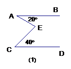 ⑴ 如图①,若∠A=200,∠C=400,则∠AEC= 0