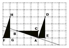 (1)如图1,在方格纸中有三个格点三角形(顶点在小正方形的顶点上),把三角形ABC绕A点顺时针旋转90°,可以得到三角形ADE,再将三角形ADE向左平移5格,得到三角形FHG。图中,直线AB、AD、FH两两之间有怎样的位置关系?