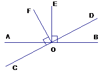 如图,直线AB与CD相交于点O,OE⊥AB,OF⊥CD。