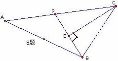 ⒏如图,CE平分∠ACB,且CE⊥DB,∠DAB=∠DBA,又知AC=18,△CDB的周长为28,那么BD的长为(