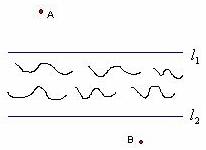 如图,某工厂位于大河一边A点,职工居住区位于对岸B点,河两岸平行,现设计一座桥,使桥面垂直于河岸,建在何处,才能使职工上下班路程最短。