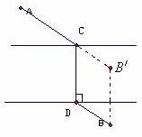 交河岸与C,过C作CD垂直于河岸,与另一岸的交点为D,则CD就是桥的位置,这时,AC+CD+BD最短。