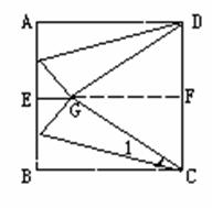 等边三角形的每一个内角都是60º。下面让我们一起来折纸,并完成下面的填空。如图,先将正方形ABCD对折,折痕为EF, 将这个正方形展平后,再分别将A、B对折,使点A、点B 都与折痕EF上的点G重合,则∠1的度数是____度。