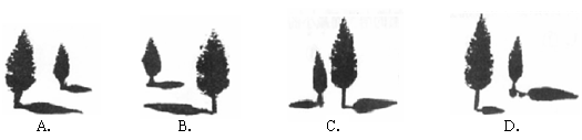 下列四幅图形中,表示两颗小树在同一时刻阳光下的影子的图形可能是