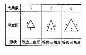 (8分)在平面内,分别用3根、5根、6根……火柴首尾依次相接,能搭成什么形状的三角形呢?通过尝试,列表如下所示: