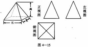 6、下面的三视图是图4-15中四棱锥的三视图,反映物体的长和高的是( )