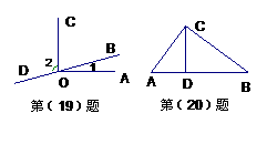 19.如图,∠1=150 , ∠AOC=900,点B、O、D在同一直线上,则∠2的度数为( )