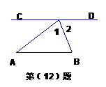 12.已知:如图,CD∥AB,∠A=400,∠B=600,那么∠1= 度,∠2= 度