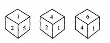 10、有一个正方体木块,它的六个面分别标有数字l-6,上图是这个正方体木块从不同面
