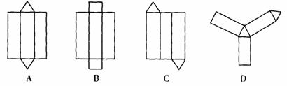 12、下列图形中,不属于三棱柱的展开图的是…………………………( )