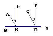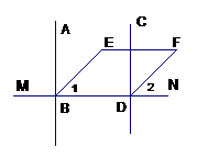 已知,AB⊥MN,CD⊥MN,垂足为B、D,BE、DF分别平分