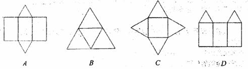 3.下面四个图形中,是三棱柱的平面展开图的是 ( )