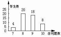 8.数学老师布置10道选择题作为课堂练习,学习委员将全班同学的答题情况绘制成条形图,根据统计图可知,答对8道题的同学的频率是 ( )