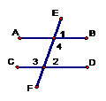 14.如图所示直线AB、CD被直线EF所截,⑴量得∠1=80°,∠2=80°,则判定AB∥CD,根据是 ;⑵量得∠3=100°,∠4=100°,也判定AB∥CD,根据是 .
