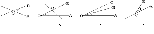 13.下列四个图形中, 能用∠1、∠AOB、∠O三种方法表示同一个角的图形是 ( )
