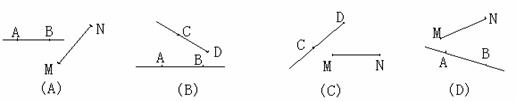 1.下列各图中,分别画有直线AB,线段MN,射线DC,其中所给的两条线有交点的是( )