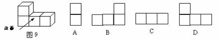 9.水平放置的正方体的六个面分别用“前面、后面、上面、下面、左面、右面”表示.如右图,是一个正方体的平面展开图,若图中的“似”表示正方体的前面, “锦”表示右面, “程”表示下面.则“祝”、 “你”、 “前”分别表示正方体的______________________.