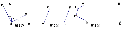 1.如图,已知OA⊥OC,OB⊥OD,∠3=26°,求∠1、∠2的度数。