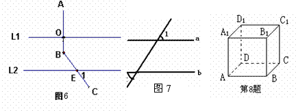 6.(河南省2003年)如图,直线L1//L2,AB⊥L1,垂足为O,BC与L2相交于点E,