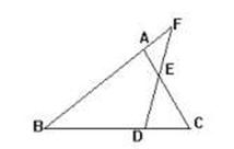 (8分) 如图,△ABC中,D是BC上一点,F是BA延长线上一点,连DF交AC于E,且∠B=42°,∠C=59°,∠DEC=47°,求∠F的度数.