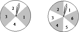 ⑵转盘停止后,指针各指向一个数字(如果指针恰好指在分格线上,那么重转一次,直到指针指向某一数字为止),用所指的两个数作乘积,如果得到的积是偶数,那么甲胜;如果得到的积是奇数,那么乙胜(如转盘A指针指向3,转盘B指针指向5,3×5=15,按规则乙胜).