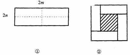 28.如图①所示是一个长为2m,宽为2n的长方形,沿图中虚线用剪刀均分成四个小长方形,然后按图②的方式拼成一个正方形。