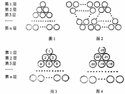 (2)我们自上往下,在每个圆圈中都按图4的方式填上一串连续的整数-23,-22,-21,