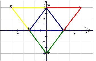 40.已知三点A(0,4),B(-3,0),C(3,0),现以A、B、C为顶点画平行四边形,请根据A、B、C三点的坐标,写出第四个顶点D的坐标。