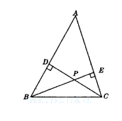 11.(2004年,陕西)如图,在锐角△ABC中,CD、BE分别是AB、AC上的高,且CD、BE交于一点P,若∠A=50°,则∠BPC的度数是( )