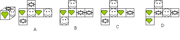 15.小丽制作了一个如下左图所示的正方体礼品盒,其对面图案都相同,那么这个正方体的平面展开图可能是 ( )