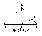 (本题9分)如图,在△ABC中,∠B=∠C,∠BAD=40°,且∠ADE=∠AED,