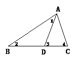 19. 如图所示,在△ABC中,D是BC边上一点,∠1=∠2, ∠3=∠4,∠BAC=63°, 求∠DAC的度数.