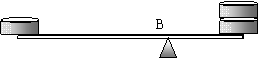 第2次,在直尺的左端放1枚棋子,右端放2枚棋子,移动支点到B点时直尺平衡(如图②);
