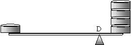 第4次,在直尺的左端放1枚棋子,右端放4枚棋子,移动支点到D点时直尺平衡(如图④);