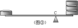 第3次,在直尺的左端放1枚棋子,右端放3枚棋子,移动支点到C点时直尺平衡(如图③);
