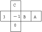 如图,是一个正方体纸盒的展开图,若在其中三个正方形A、B、C中分别填入适当的数,使得它们折成正方体后相对的面上两个数互为相反数,则填入正方形A、B、C、中的三个数依次是
