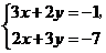 10.《九章算术》是我国东汉初年编订的一部数学经典著作.在它的“方程”一章里,一次方程组是由算筹布置而成的.《九章算术》中的算筹图是竖排的,为看图方便,我们把它改为横排,如图3-1、图3-2.图中各行从左到右列出的算筹数分别表示未知数x,y的系数与相应的常数项.把图3-1所示的算筹图用我们现在所熟悉的方程组形式表述出来,就是