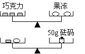 3.(08河北省)如图所示的两架天平保持平衡,且每块巧克力的质量相等,每个果冻的质量也相等,则一块巧克力的质量是 g.