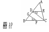 如图11,CD⊥AB于D,DE∥BC,∠1=∠2,则FG与AB的位置关系是_____。
