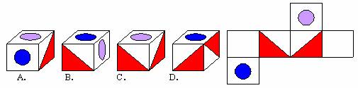 把正方体的表面沿某些棱剪开展成一个平面图形(如图),请根据各上面的图案判断这个正方体是( ).