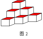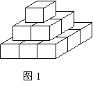 5.一个画家有14个边长为1m的正方体,他在地面上把它们摆成如图1的形状,然后他把露出的表面都涂上颜色如图2,那么被涂上颜色的总面积为 ( ).